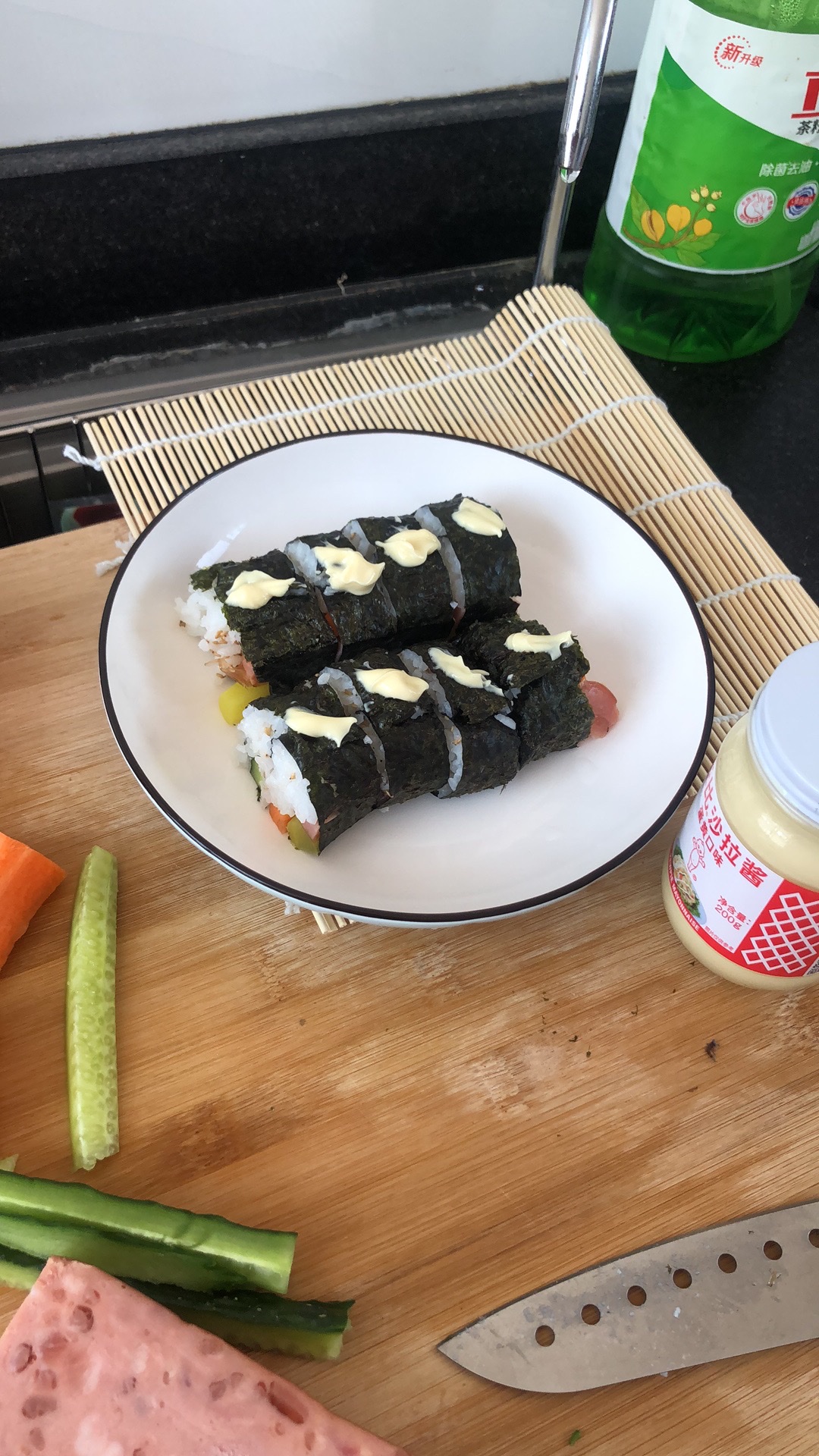 就是海苔难咬 不太好 第一次做没想到那么成功 哈哈 自己也可以做寿司 不用去外面买了 东西齐全 做起来很简单