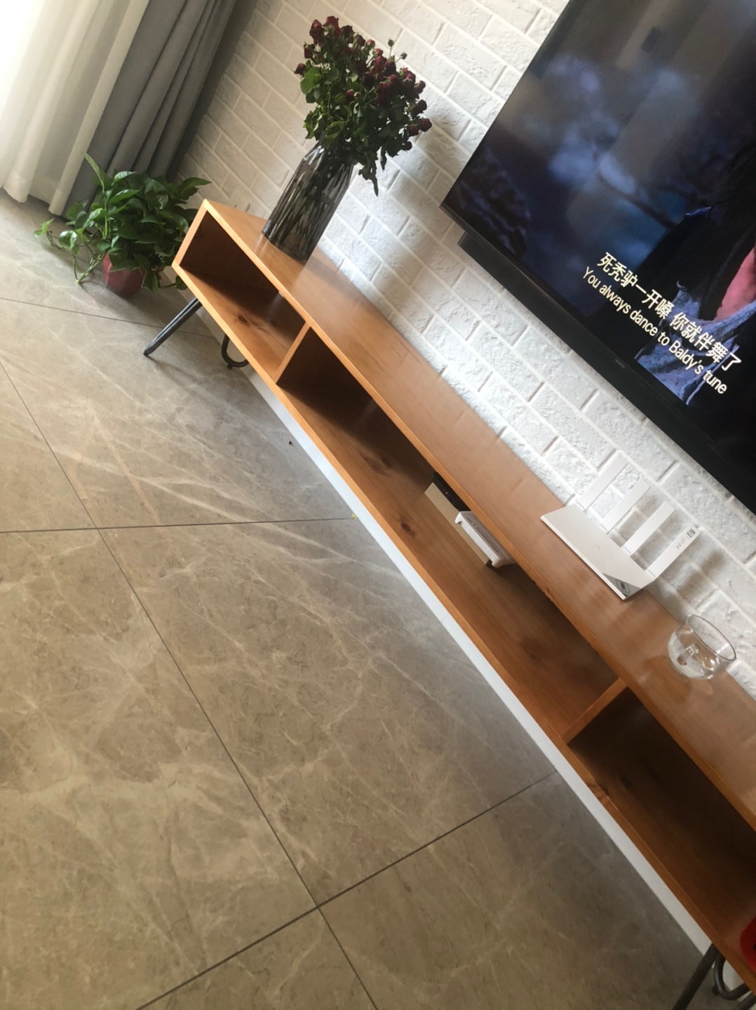 很不错的电视柜,适合小户型居室或度假房陈设,实用且价廉物美,最重要的是:居然是松木实木的,送货入户,留有标准化螺口和支架、配送有简易六角扳手,轻松搞定?支架底部有高低调节旋钮,不过我家没用上,一切都很合适。