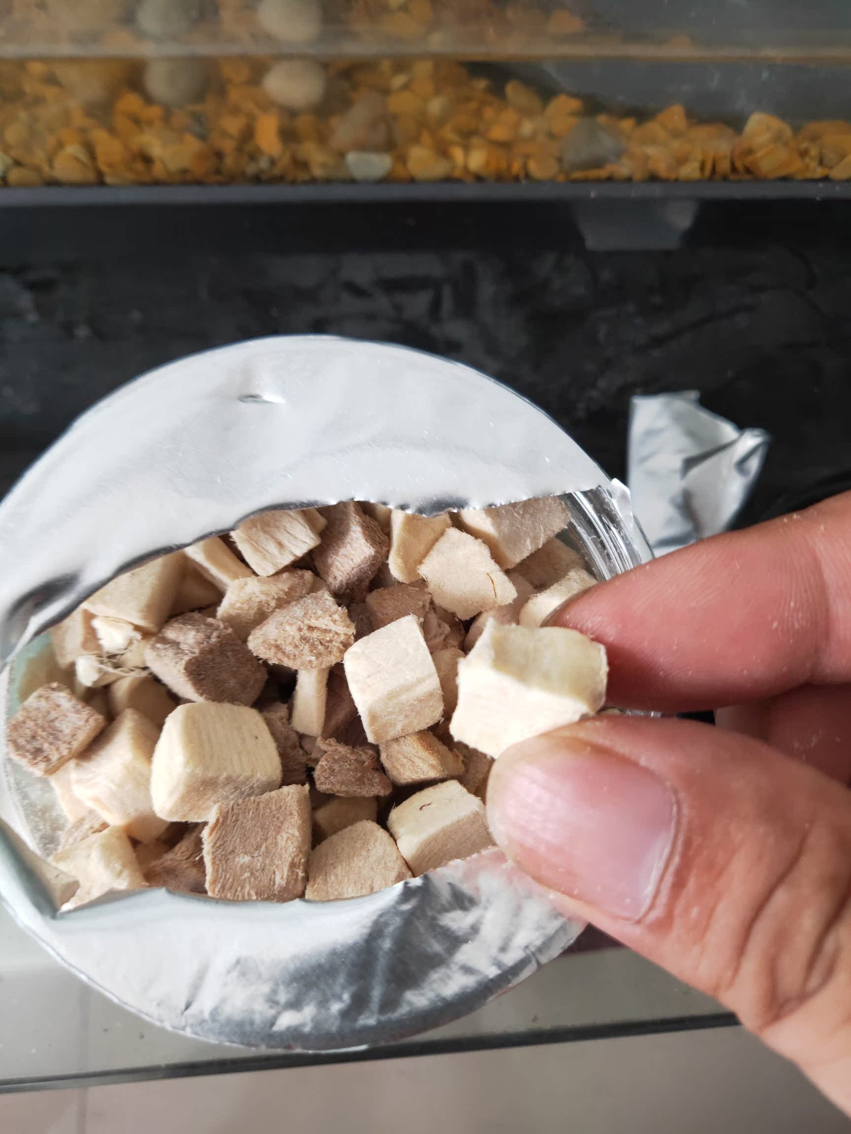 物流很快,包装很好,实实在在的肉粒,很有分量,每次投个两三粒就可以喂饱了,确实是真肉粒,良心老板,生产日期也是最新的,很放心,而且是风干的,方便保存,乌龟很喜欢,胃口打开,吃完再来,很不错
