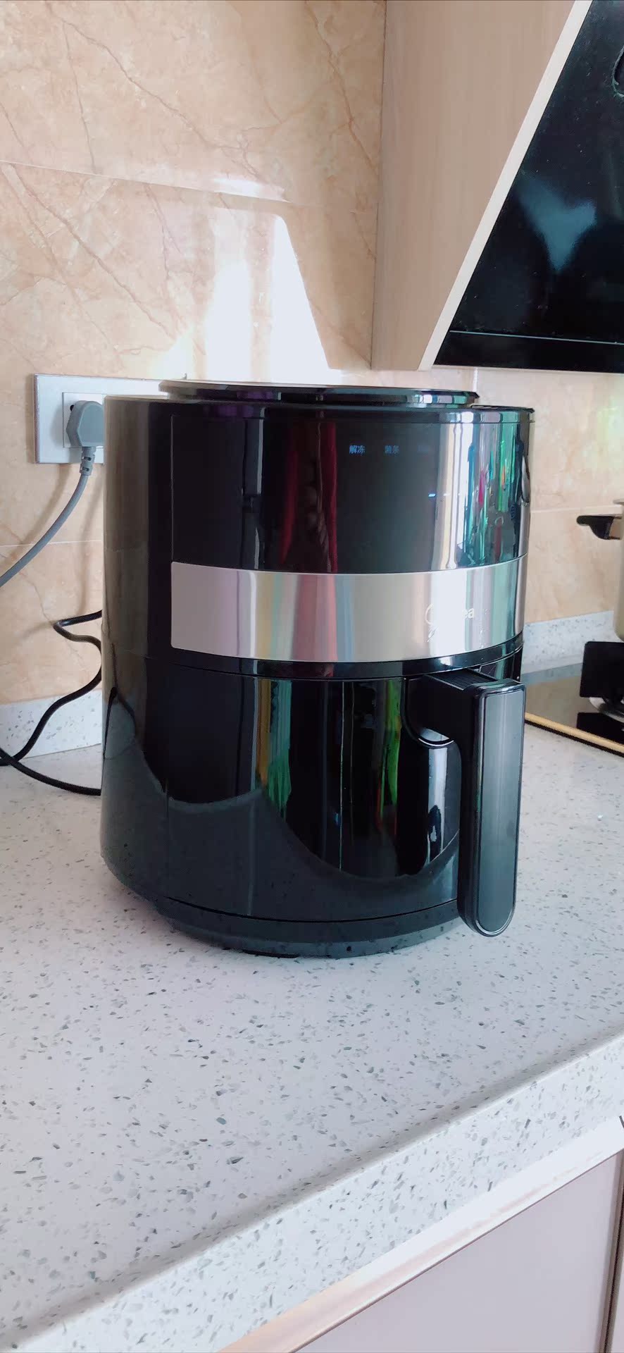 第一次买空气炸锅,收到了迫不及待的打开了。外观很高大上。摸着很有质感。颜值真的太高了。我真的没有想到会有这种神器。自己纯厨房小白,平时工作真的很忙。几乎不怎么下厨房的。切了点土豆,直接放锅里了。十几分钟就好了。制作的过程弥漫着浓浓的香味。口感真的不错,美的大品牌不会让我失望,放心购买。