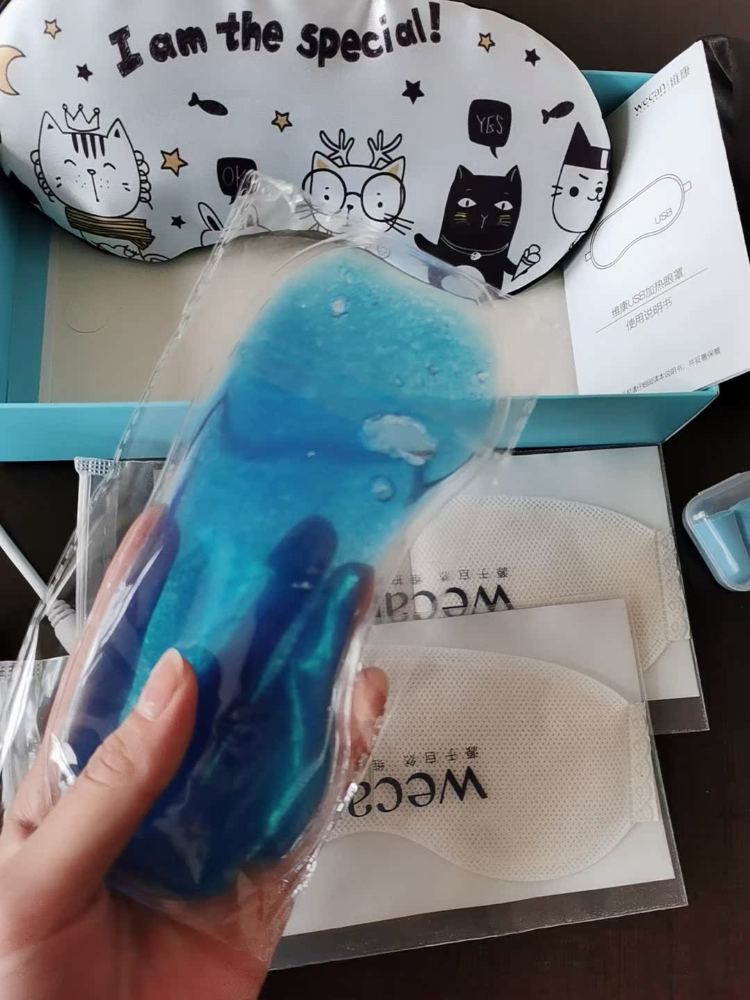 wecan蒸汽眼罩怎么样?wecan蒸汽眼罩?wecan蒸汽眼罩?新买的神器到手了,眼罩图案设计很不错,猫咪超级可爱,送的小礼品也不少,戴上试了,发热很快,带温控设计的,可以随意调节温度, 我家孩子近视眼天天学习也累,正好买了这款神器,晚上睡觉时戴上可以缓解眼疲劳, 对眼部血液循环很有帮助,全家人都可以用,效果非常好。。那么wecan蒸汽眼罩到底怎么样呢?下面我们来看看《wecan旗舰店》店铺所说的这款《蒸汽眼罩usb充电式发热加热缓解眼疲劳热敷真丝睡眠遮光护眼罩女》的用户评价:
