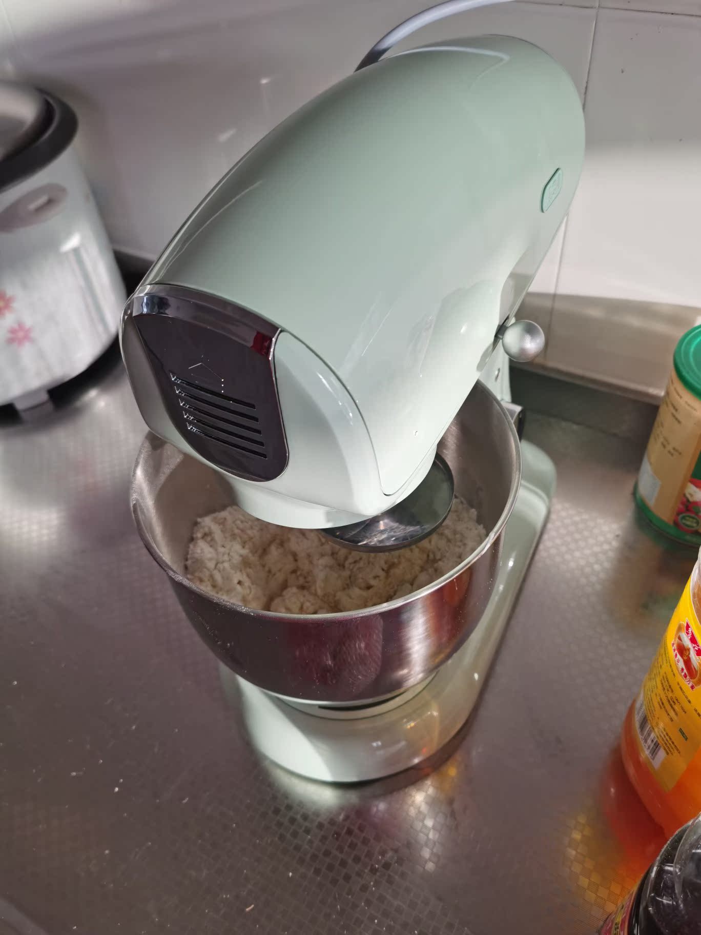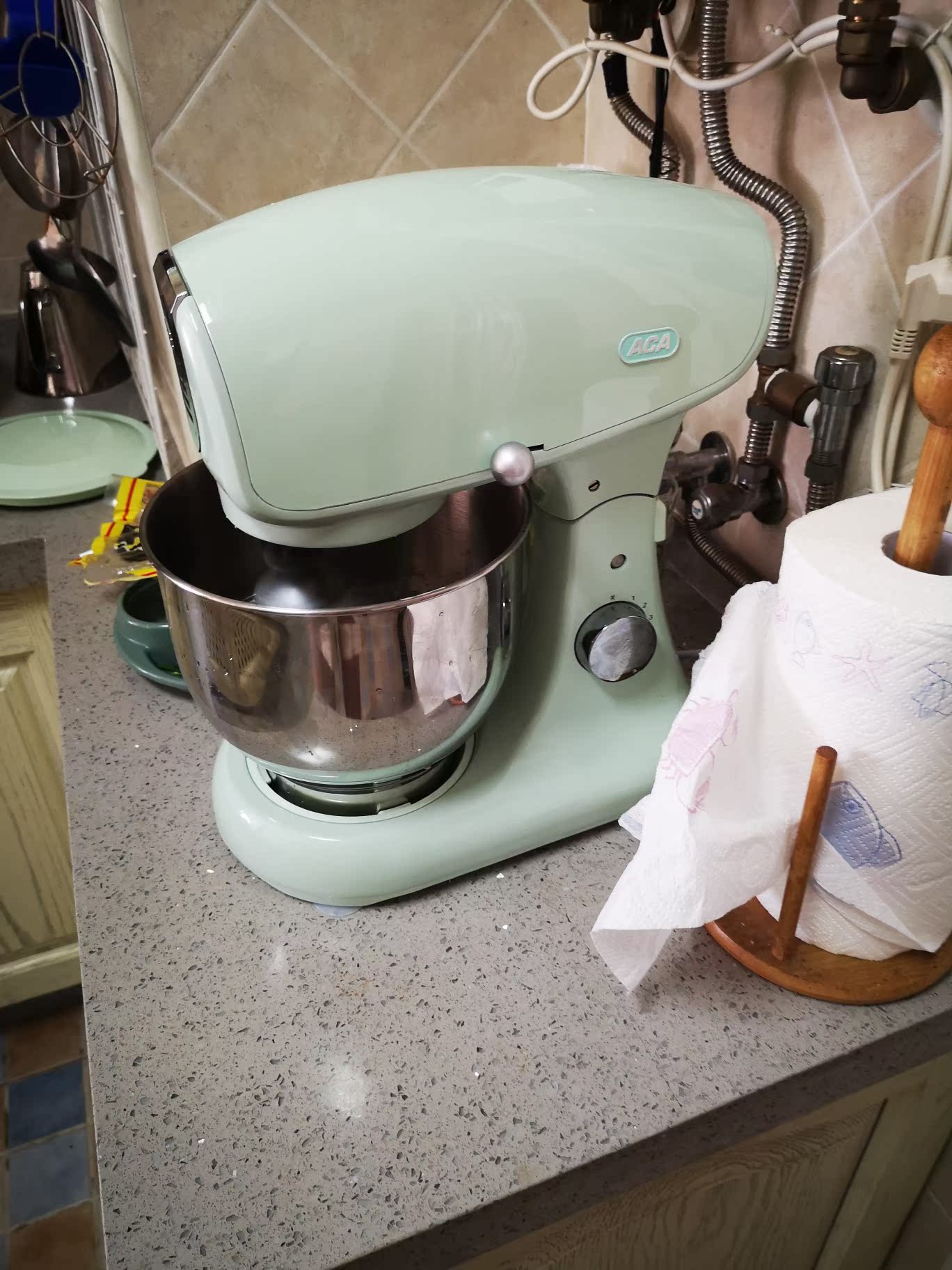 薄荷绿的颜色和家居很搭,雅致清新,平时使出洪荒之力揉出来的面根本比不上这个厨师机轻松揉出来的效果,到手之后已经用这机器做了馒头包子面包,口感比外面餐馆还好,以后可以帮我省不少时间和力气,使用无比方便,居家必备!!