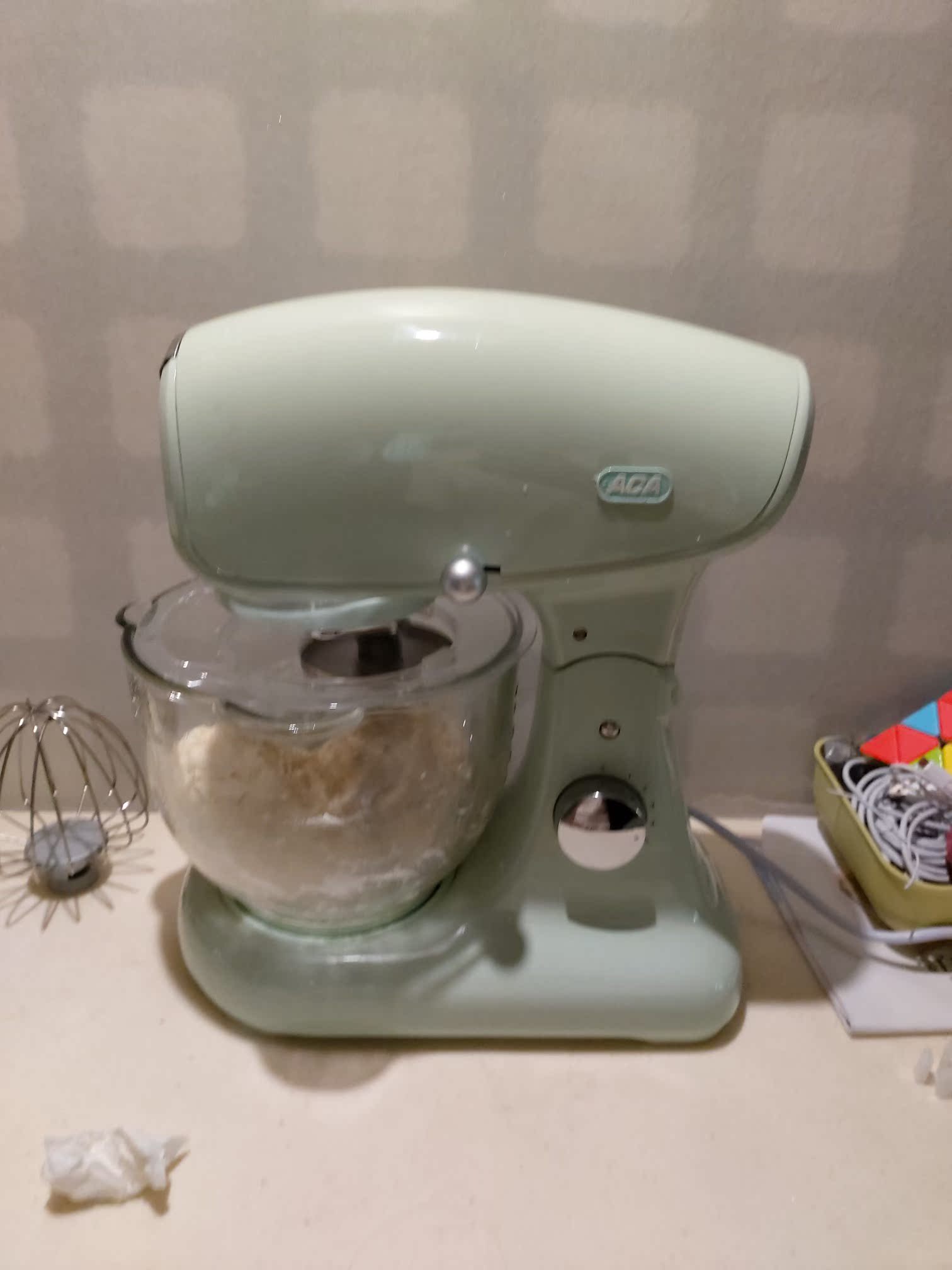 之前我只手揉过两次,辛辛苦苦也没好好出膜,胳膊却要疼好几个小时。却一心想做面包,最后在朋友的推荐之下,选了这款。对于面包新手来说,下单前是有点小纠结的,收到货感觉到那重量,运行起来看着那稳当劲儿,感觉很值。送的称也好精致,第一次选择ACA,成功被圈粉(o^^o)客服可颂服务及时又热心,问她一个问题,她就把周边问题都回答了,真的机灵又周到。