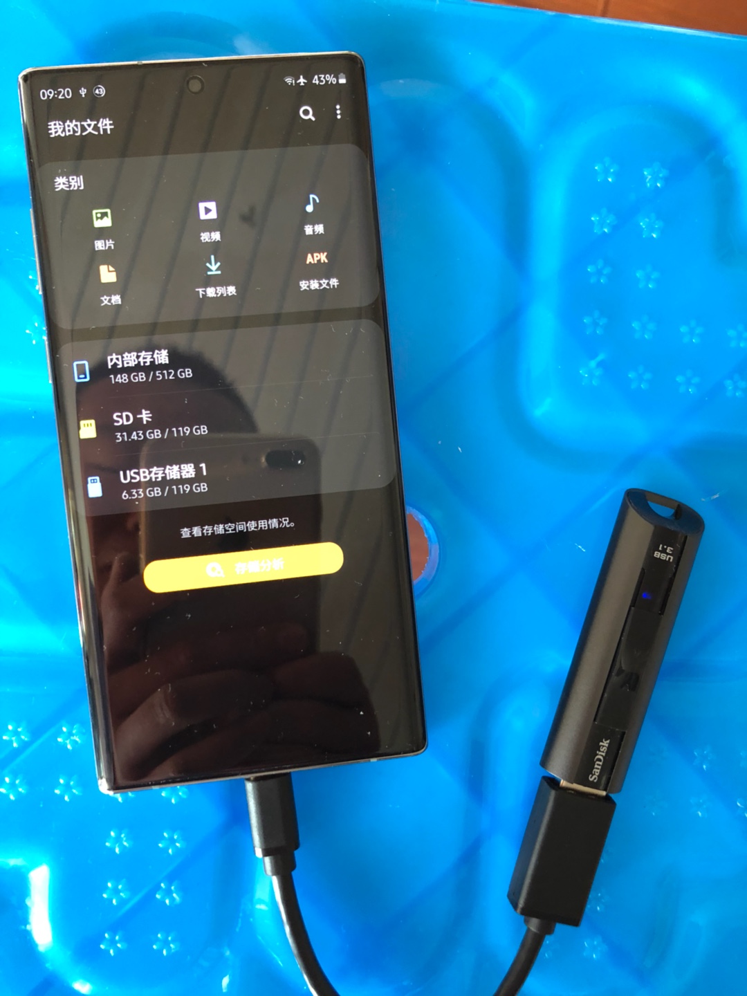 外接了个U** 3.1 SSD,速度不算非常突出,但还算过得去,比U**3.0强不少。 比预想的1.0GB少。 因为与卡、硬盘盒、SSD几个因素有关,不知道是哪个是瓶颈。