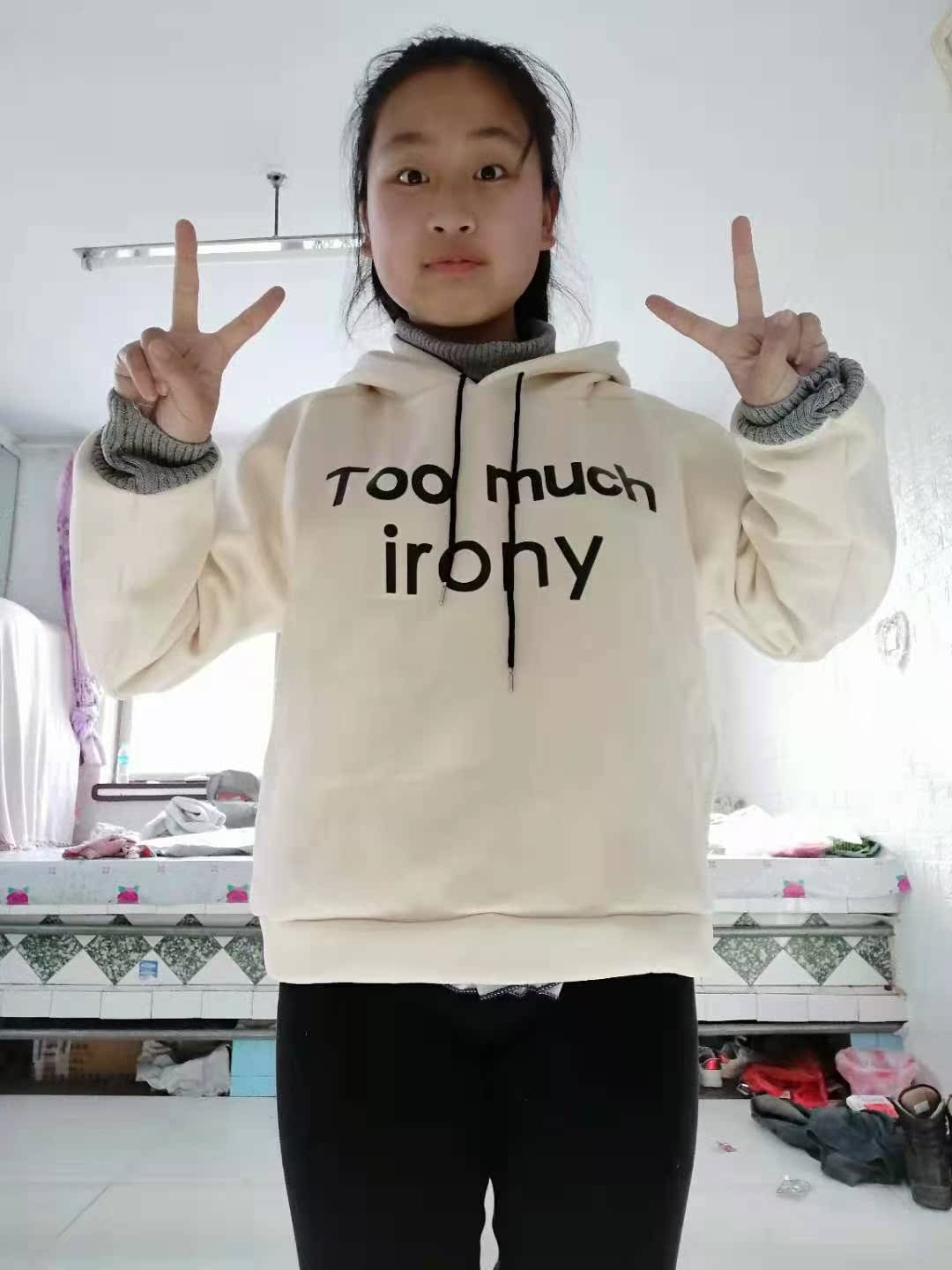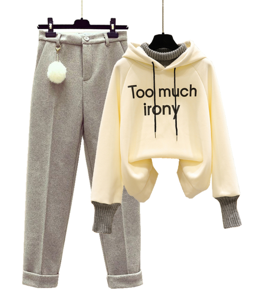 - 颜色分类: 米白色卫衣 桔色卫衣 绿色卫衣 杏色毛呢裤(后松紧腰) 米白色卫衣+杏色休闲裤 桔色卫衣+杏色休闲裤 绿色卫衣+杏色休闲裤