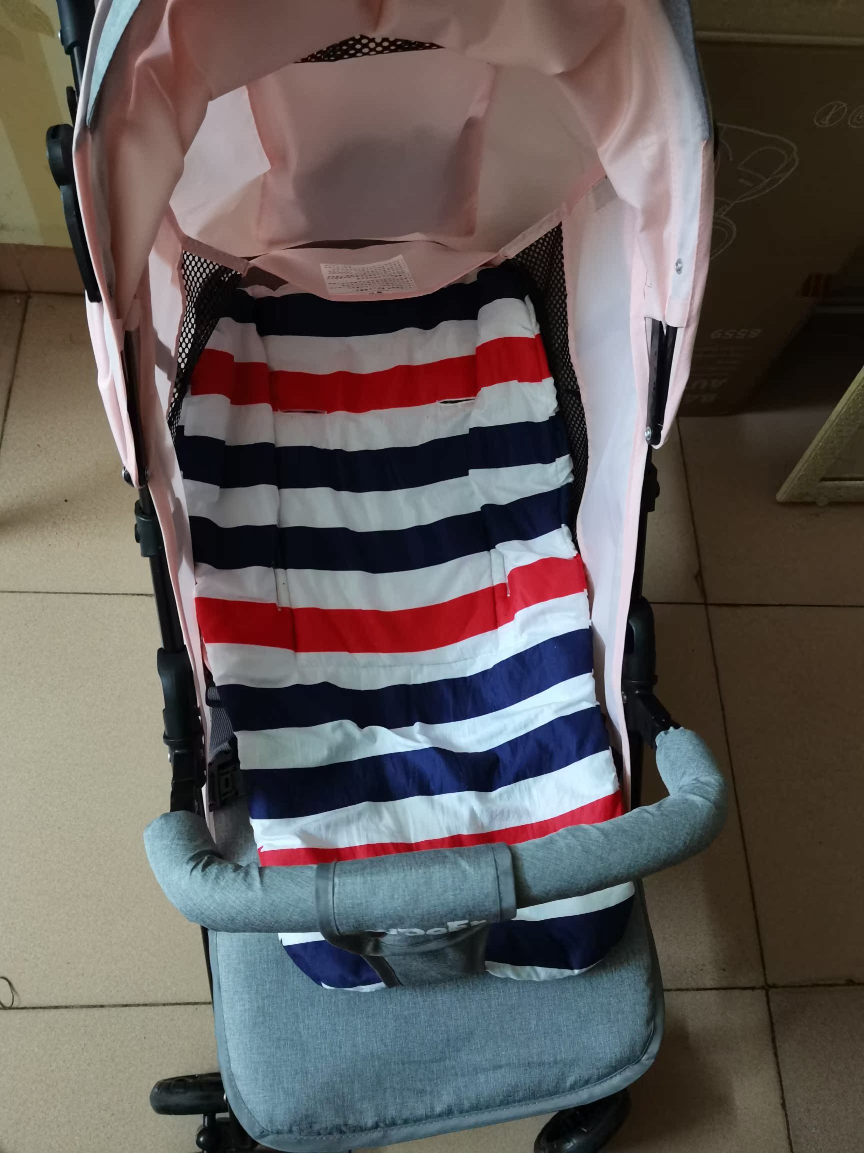 小车收到了,孩子他爸爸三下五除二就安装完了,很轻巧,宝宝九个月,坐着也很舒服,