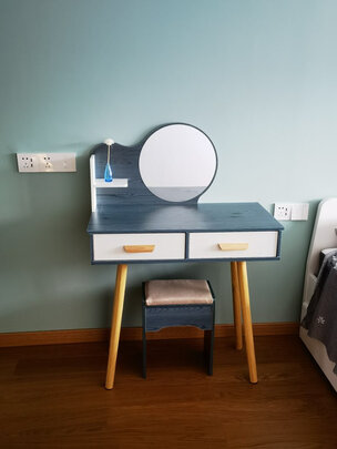 梳妆台很满意。颜色好看。设计的非常时尚简约。材质不错,好评。