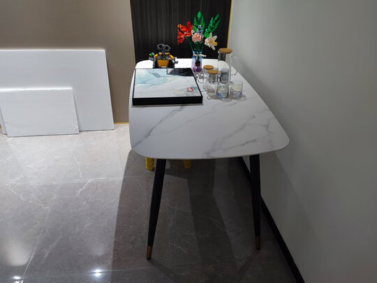餐桌已经安装好了,确实挺不错,很满意的一次网购。款式时尚简约。做工非常细致。很容易清洁打理。