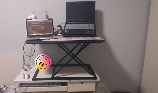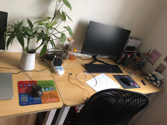 答:桌子要够大,不然桌面上没地方放东西,也不稳定。产品质量还可以,无极调节