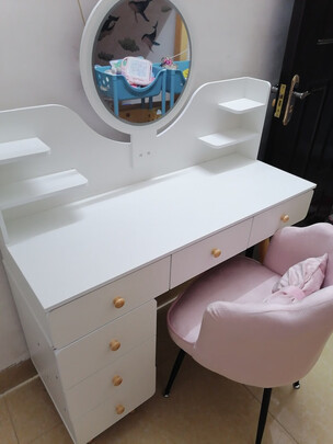 化妆台收到货了,非常非常喜欢,做工精致漂亮,已经被很多人夸了,真的太开心了,已经是他家的忠实粉丝了