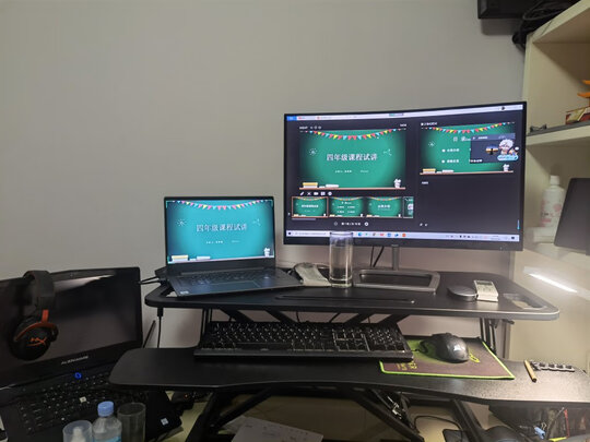 用了一段时间,小桌的使用非常方便,无论是想在床上办公,还是坐久了站着办公。床上坐着办公的时候高矮合适,桌面可以倾斜,人体工学角度也很合适。站着办公的时候小桌平衡性、稳定性很好,放在在桌面上丝毫不摇晃。收纳方便,高矮随意调节。非常好的一款桌子。